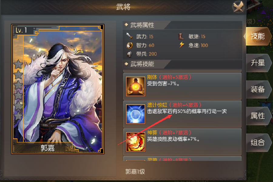 郭嘉:不建议平民培养,因为只有+6后比较给力,前期很无力;