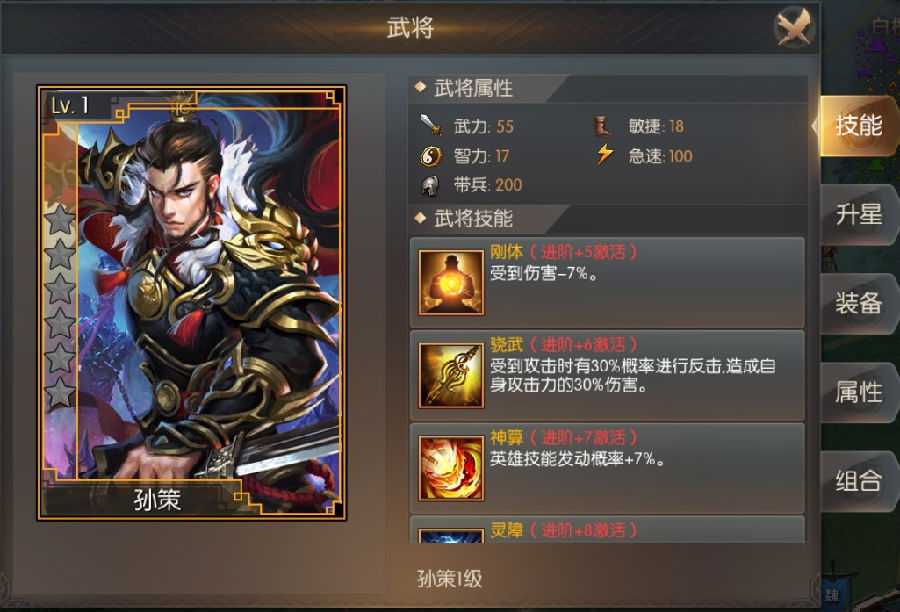培养四号位:孙策,能打能抗,平民肉盾首选,+6后可吸引伤害,保证主力输出存活