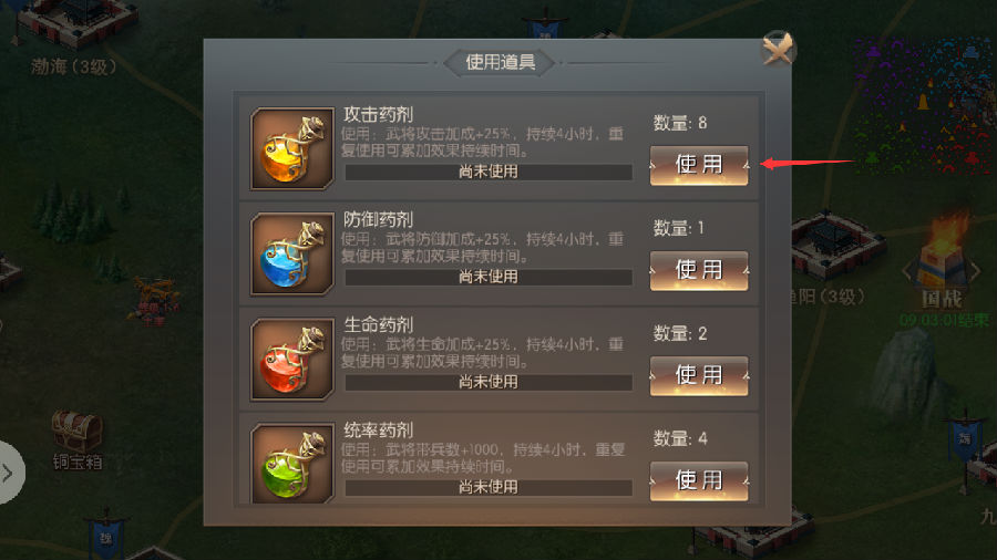 乱世征战中有4种能短暂提升自身战力的战争药剂,合理使用可以让你在乱世之中临危不乱,甚至可以以弱胜强!