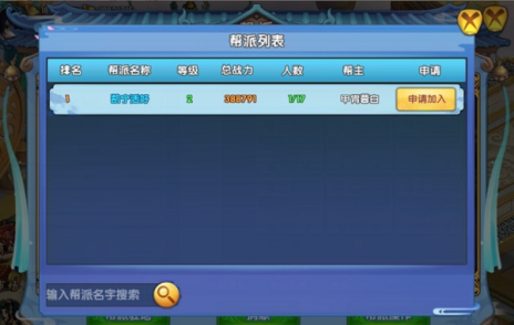 6、帮派列表:帮派列表主要的是展示所有帮派的信息,如果你已经加入某个帮派了,那么就不能加入,需要退帮才能够重新申请。