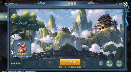 1、在开服7天后,每周2,4,6晚上7点到7点半会开启巅峰塔,并且在主界面显示巅峰塔图标