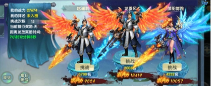 2、竞技场中会显示玩家当前战力和排行,同时也会显示可挑战对手的相关信息