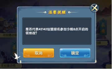 1、活动开启时,所有报名的仙盟玩家都会收到弹框提示。