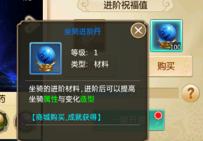 ※成就-伙伴培养中的坐骑可以领取到坐骑进阶丹