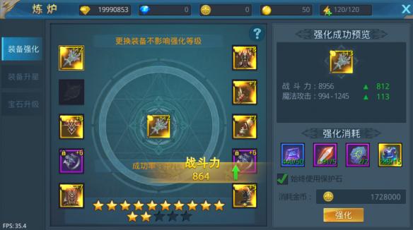 ② 在积攒了一定量的金币强化石之后,使用强化保护石优先将武器、首饰强化到9。