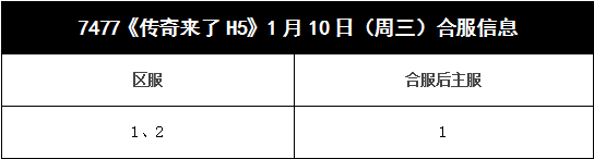 《传奇来了H5》1月10日合服公告