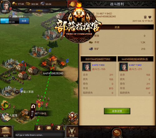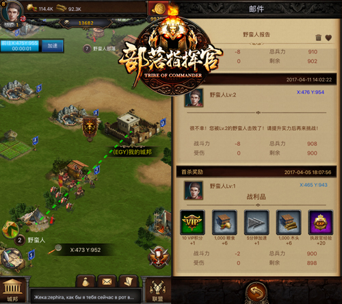 在游戏中,选定要攻击的野蛮人部落,选择要派遣的将领和军队,发起攻击,军队会自行向攻击目标前进并作战,战斗结束后系统会自动将战报发送至邮箱。世界中的野蛮人需要逐级挑战,等级越低的野蛮人攻击时获胜的几率越大。攻击胜利有机会掉落加速道具、战争号角、金币及神秘礼物。