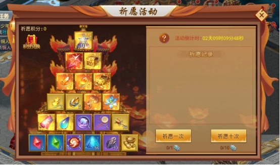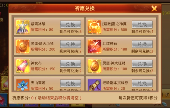 1、 祈愿一次需消耗1个祈愿令,祈愿令不足可花费30元宝购买一个。