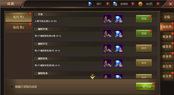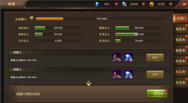 ★点击一键领取,即可领取所有已达成的成就奖励,更快更方便!