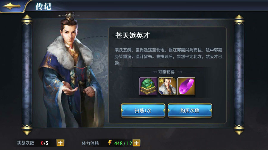 2.合理分配自己的体力进行扫荡,尽量扫荡后期培养的英雄关卡,虽然体力用完可以购买,但是购买也有次数限制