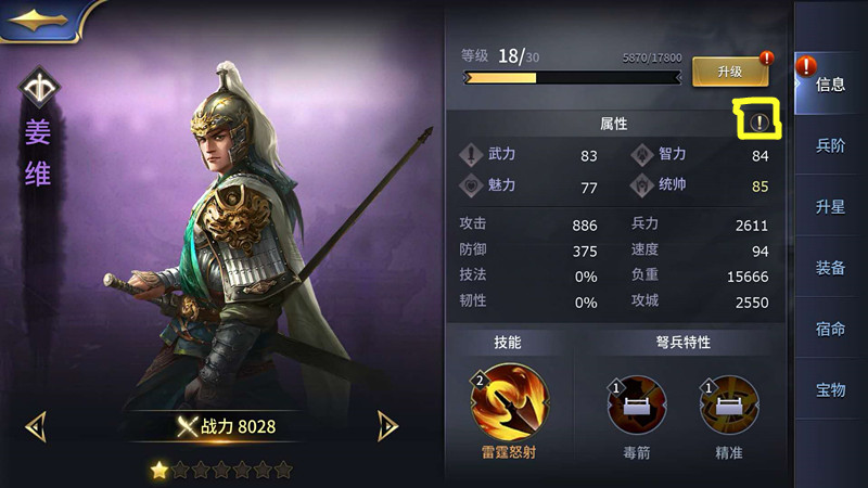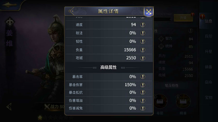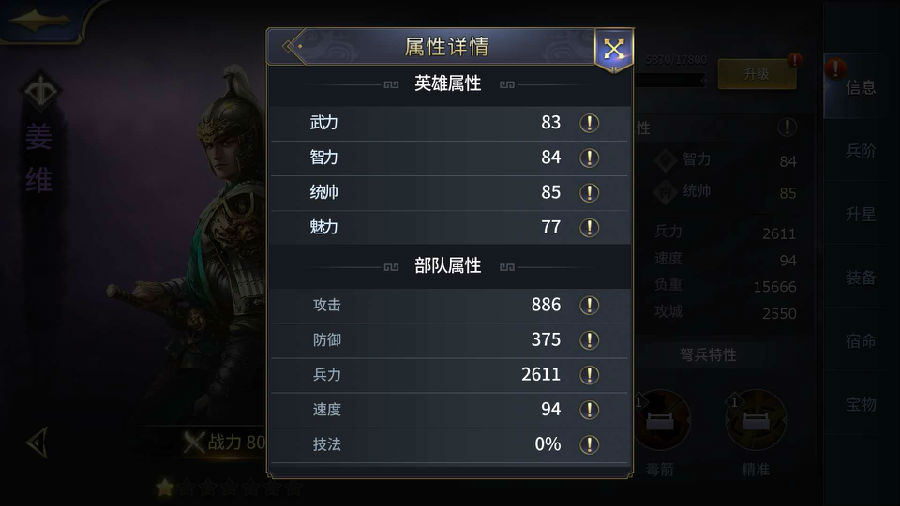 英雄属性,同时有三种属性组成,分别是:英雄属性,部队属性,高级属性。每个属性的提升都能提高整体部队的战力。