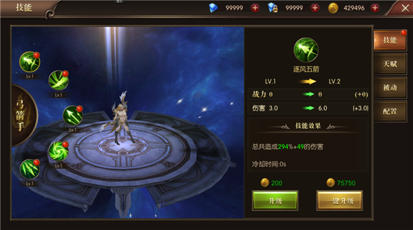 ★一键升级可直接提升所有技能等级,免去您操作的繁琐。