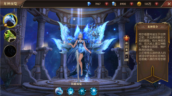 通过龙神界面的预览按钮,可以查看龙神对应的技能。