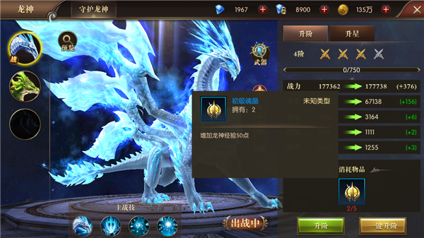 龙神可通过魂晶来提升自身的阶数,带来更多的属性提升。