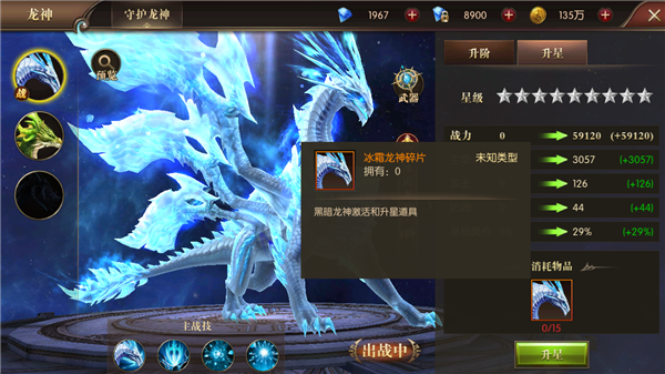 龙神可通过相应的碎片来提升自身的星级,释放更强大的能力。