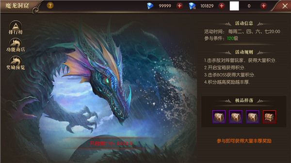 2. 魔龙洞窟活动只在每周二、四、六、七的20:00开放,千万不要错过哦!