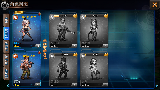 攻击型英雄:单欣菲(女主角)、阿狗、鬼王超、林希微、司徒烈、安琳