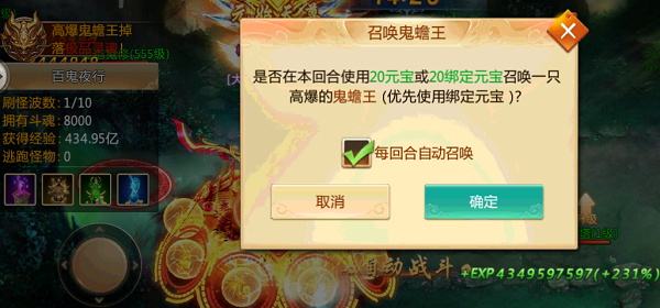 点击右上角的召唤BOSS选择每回合自动召唤则可以每回合召唤一个大BOSS,有几率掉落更好属性的聚魂噢
