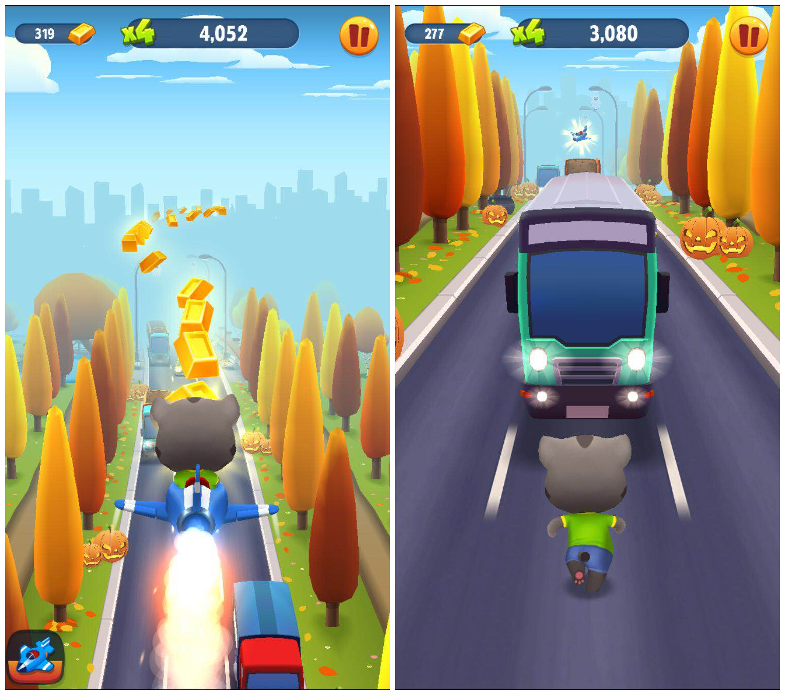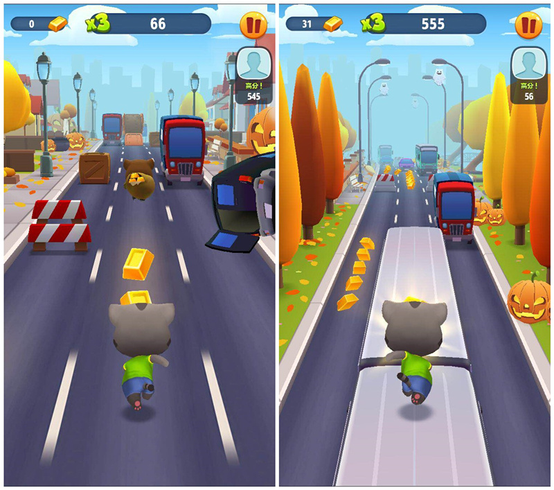 咦?汤姆猫追逐的那个身影怎么辣么眼熟?竟然是干脆面君!放下那袋金子!如果不放!那么请多丢一点!o(╯□╰)o于是一场猫和熊的追逐之战开始了......用手指在屏幕上左右滑动控制汤姆猫跑步的方向,向上或向下滑动,可以让汤姆猫跳跃或者趴下来躲避障碍物。