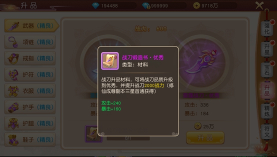 升品分五个阶段,分别为精良-优秀-史诗-传说-神器,每件装备必须拥有对应品质的锻造书才能进阶到下一个阶段,锻造书可以通过日常运营活动或者副本掉落获得。