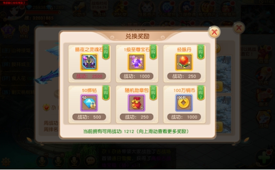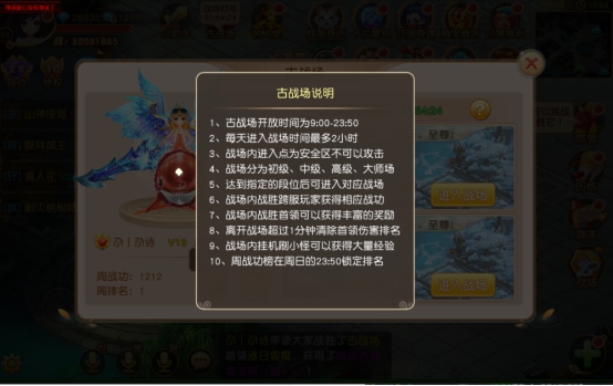 2、战功可以在“古战场”界面“兑换”进去兑换稀有道具;每周会有周战功榜,排名前50名的玩家都会得到相对应的丰厚奖励。