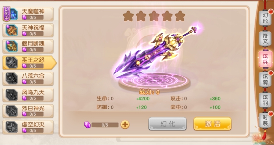 炫兵是武器时装,碎片通过活动收集,集齐五个就可以激活外观进行幻化啦,例如图中的巫王之怒碎片就可以通过参与胜者为王获得,是不是霸气外露,异常炫酷呢。