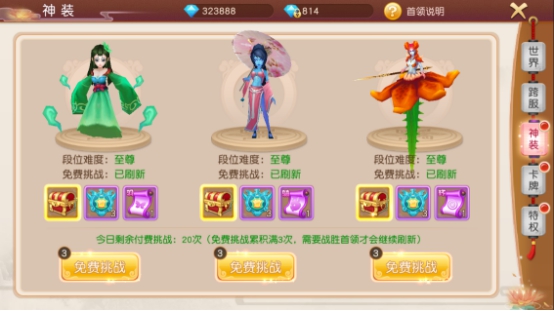 1、神装首领可以免费挑战,也可以付费挑战