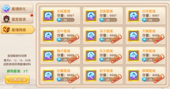 星魂商城可以消耗钻石购买十二星魂,对于不想挑战首领的玩家,这也是一种获得星魂的途径。