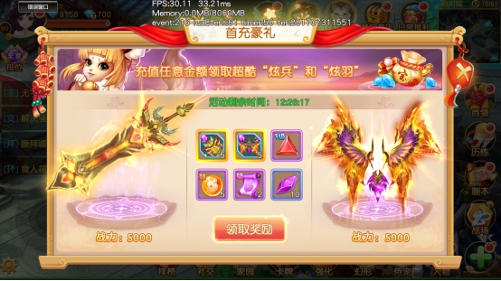 游戏主界面的正上方有图标“首冲豪礼”,点击进去即可