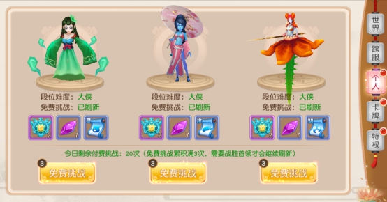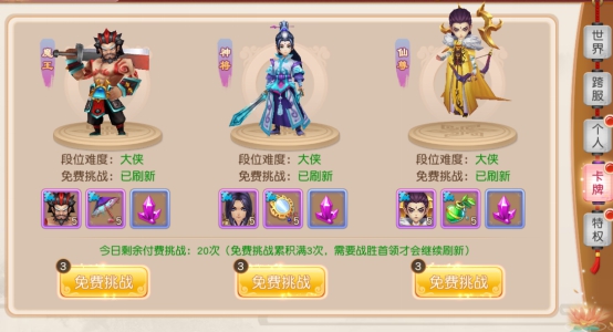 主要产出卡牌随便的首领,每天都可以免费进行挑战,免费次数使用完后可以付费挑战,首领难度会随着玩家的段位提高而提高,当然奖励也会更丰厚。卡牌首领是收集卡牌的主要方式。