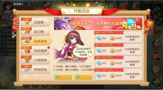 2、玩家可以选择投资,达到对应等级后即可以领取返利