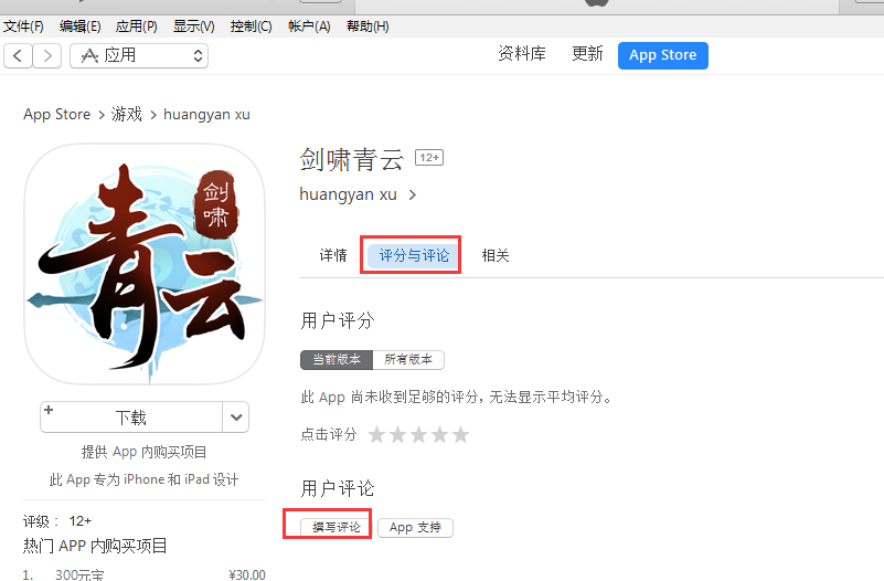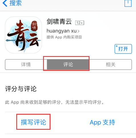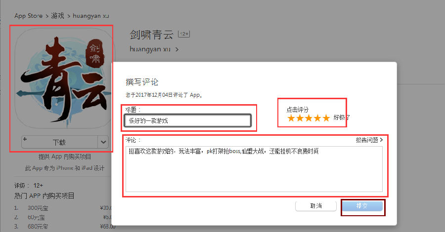 ① 使用苹果设备或者windows电脑在appstore给“剑啸青云”游戏一份五星好评;