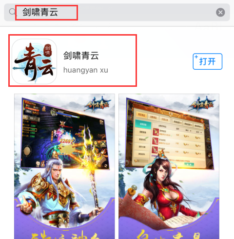 1) 在appstore搜索“剑啸青云”,点击“剑啸青云”游戏;