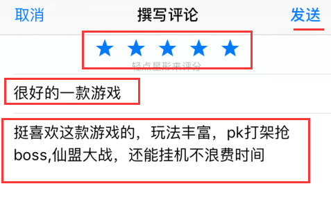 3) 选择五星,填写标题和不少于10字的好评后点击发送;