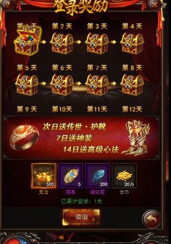 “囊中羞涩不用怕,定时领取登录礼包可获得丰厚的启动资金哟~”
