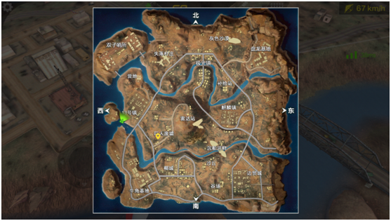 从高空俯瞰全景,的确是名副其实的荒岛,至于具体景色如何,还得落地后才能仔细观察了。场景地图相当大,整个荒岛被两条河川分为了三个部分,降落的地点也会决定你的开局是否顺利,必须谨慎选择哦!