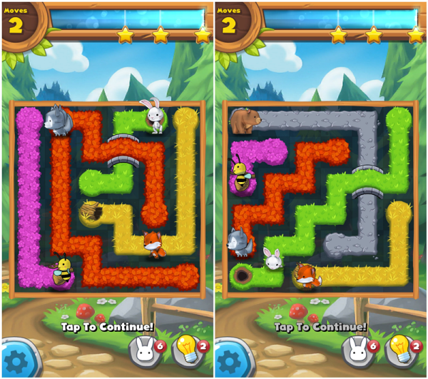游戏的关卡数量非常多,每个关卡里又包含了五个小关,场景跨越了森林、河流、山川,随着游戏不断的深入,需要解救的小动物会越来越多,狐狸、兔子、蜜蜂、灰熊等等,至于怎么解救,我想大家应该不会陌生了吧。